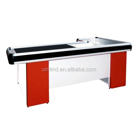 カスタマイズされた電子スーパーマーケットチェックアウトカウンター便利なコンベヤーベルト付き